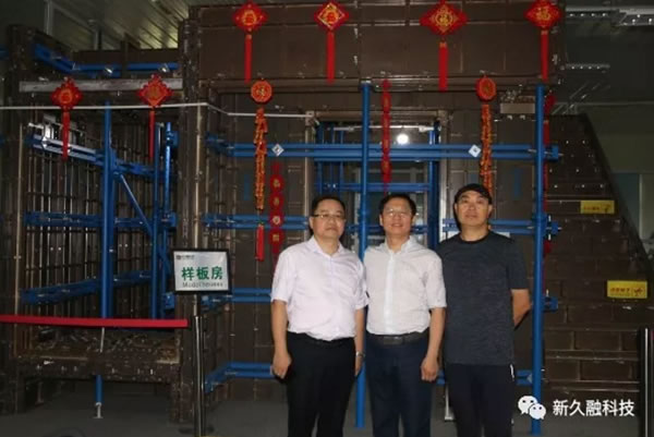 在公司董事長唐華強先生、副總經理席仕剛先生的陪同下,先后參觀了下料車間、機器人焊接工作臺、噴涂線車間、預拼裝工段、舊模板清洗車間,隨后觀摩了公司實體樣版房。唐董事長分別詳細介紹了公司生產技術、產品特性、鋁模板安裝流程、市場發(fā)展現狀以及我公司獨特的企業(yè)文化。